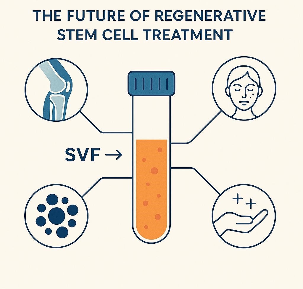 Stromal Vascular Fraction (SVF) is a cutting-edge form of cell therapy derived from adipose tissue. It contains stem cells, growth factors, and immune cells that aid tissue repair and regeneration. In 2025, SVF therapy is gaining ground as a revolutionary tool in regenerative medicine, particularly for treating orthopedic injuries, autoimmune diseases, and cosmetic conditions.